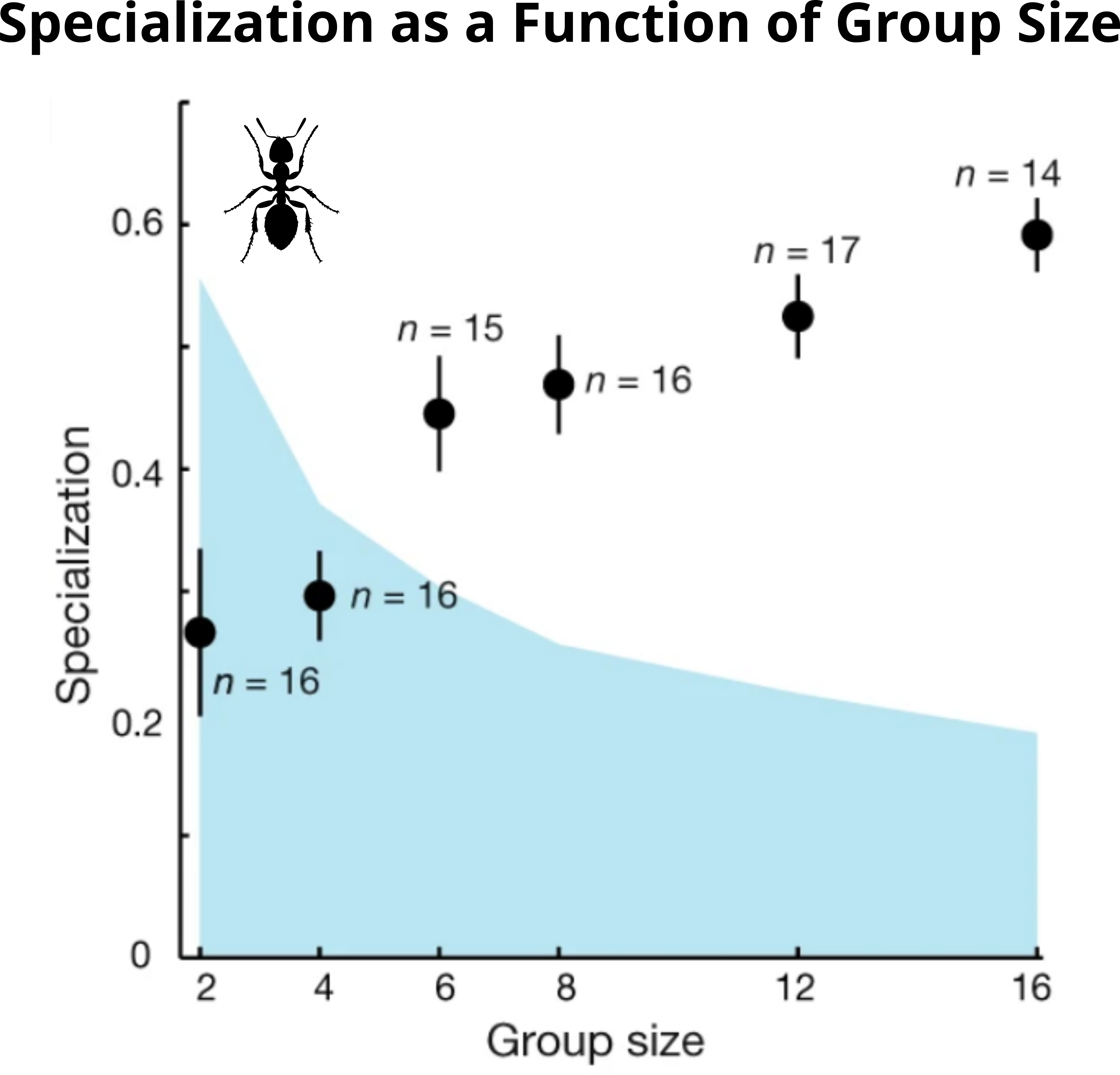 - Specialization of individual behaviors will result in complementary roles, producing a measurable division of labor within the group.